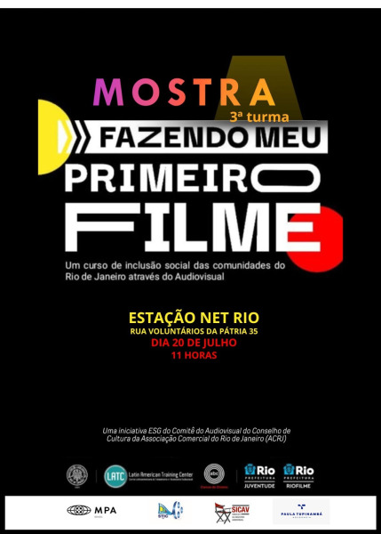 Sobre o projeto:“Fazendo Meu Primeiro Filme” é uma ação do Conselho de Cultura da ACRJ que conta com a colaboração de diversos parceiros e apoiadores institucionais, estratégicos e privados, entre eles: Cinemark, ABC Cursos de Cinema, LATC, Secretaria Especial da Juventude Carioca (JUVRio), RioFilme, L.C. Barreto Produções Cinematográficas, Motion Picture Association – Brasil, Michael Murphy (ex-vice-presidente da Universal e da Paramount), Atrevida Filmes, VIVA Productions, Paula Tupinambá Advocacia, SICAV, STIC (Sindicato Interestadual dos Trabalhadores na Indústria Cinematográfica e do Audiovisual) e Conspiração Filmes.