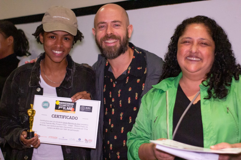“Fazendo Meu Primeiro Filme” (“Making My First Film”) is an initiative of the ACRJ Cultural Council, developed with the collaboration of several institutional, strategic, and private partners and supporters, including: ABC Cursos de Cinema, LATC, Atrevida Filmes, VIVA Productions, Paula Tupinambá Advocacia, SICAV, and ALM Insurance.