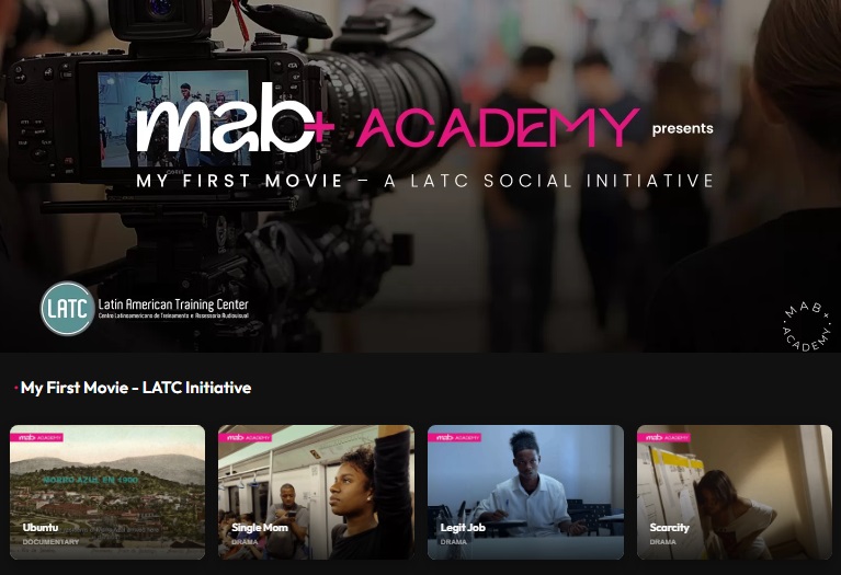 Por meio do novo acordo de colaboração entre o Latin American Training Center-LATC e a MAB+, nova plataforma de streaming dedicada a cineastas independentes de todo o mundo, com foco principalmente no cinema brasileiro, os curtas-metragens produzidos pelos alunos do curso de cinema “Fazendo meu primeiro filme” serão selecionados e disponibilizados na seção “MAB+ Academy” da plataforma.